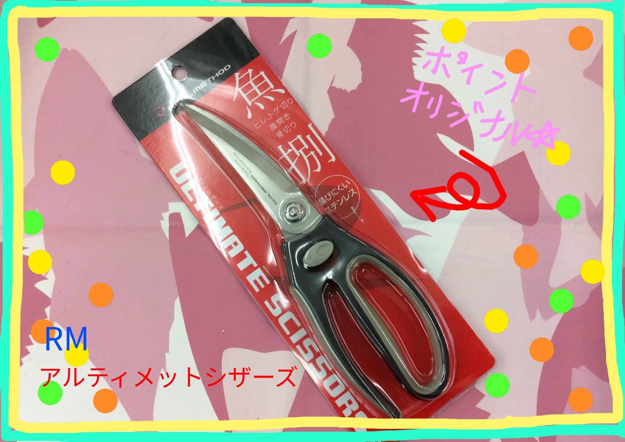 皆さんこんにちは 本日のオススメはこちら RMアルティメットシザーズ かんたんに魚が捌ける優れもの!! 魚のヒレ・トゲ切り、腹開き、骨切りなどにGOOD さらにサビに強いステンレス刃を採用...