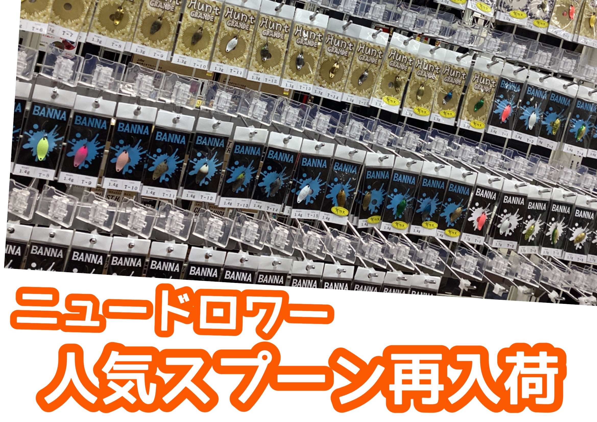 みなさまこんにちは! 横浜都筑店あべですっ 本日はトラウトルアーコーナーからお知らせ! 人気のニュードロワーのスプーンが 大量再入荷しました! ハントやハンドグランデ...