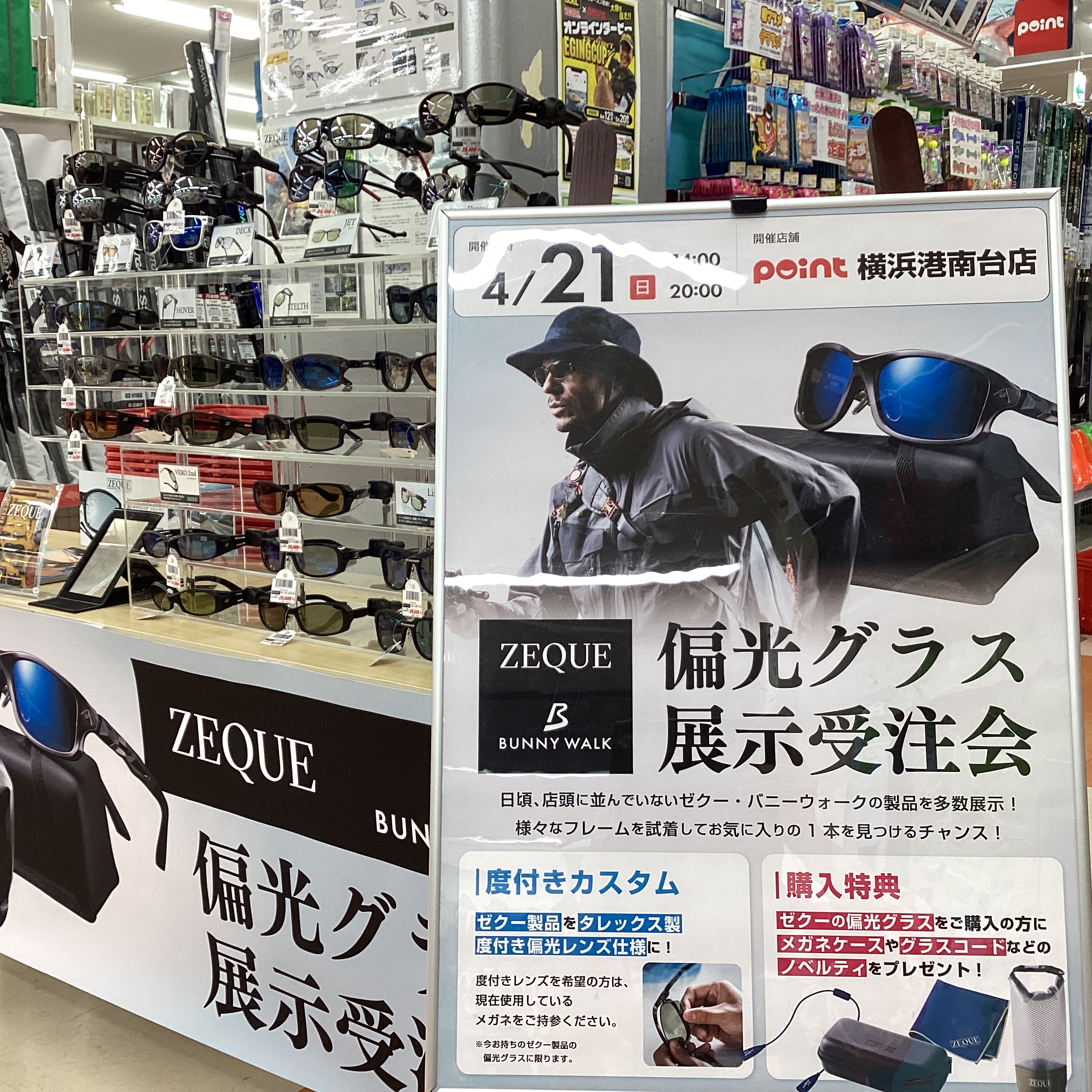 こんにちは!! 港南台スタッフ濵口です 皆様にご案内いたします 4月21日(日)14:00 20:00 『ZEQUE&BUNNY WALK偏光グラス展示受注会』 開催致します...