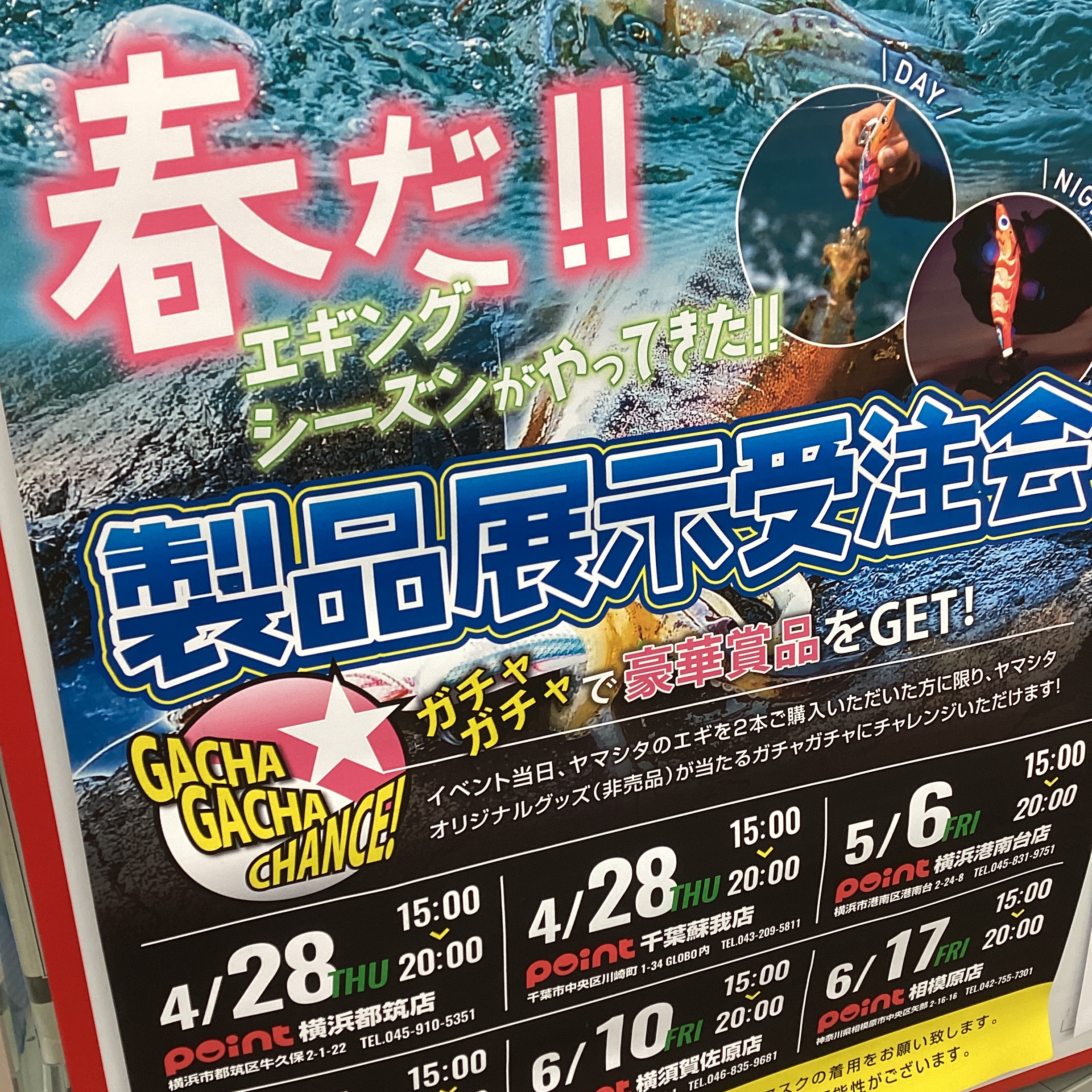 みなさまこんにちは! 横浜都筑店あべですっ 本日はイベント開催のお知らせです エギでおなじみの「YAMASHITA」様による 製品展示受注会を明日4/28に開催します...