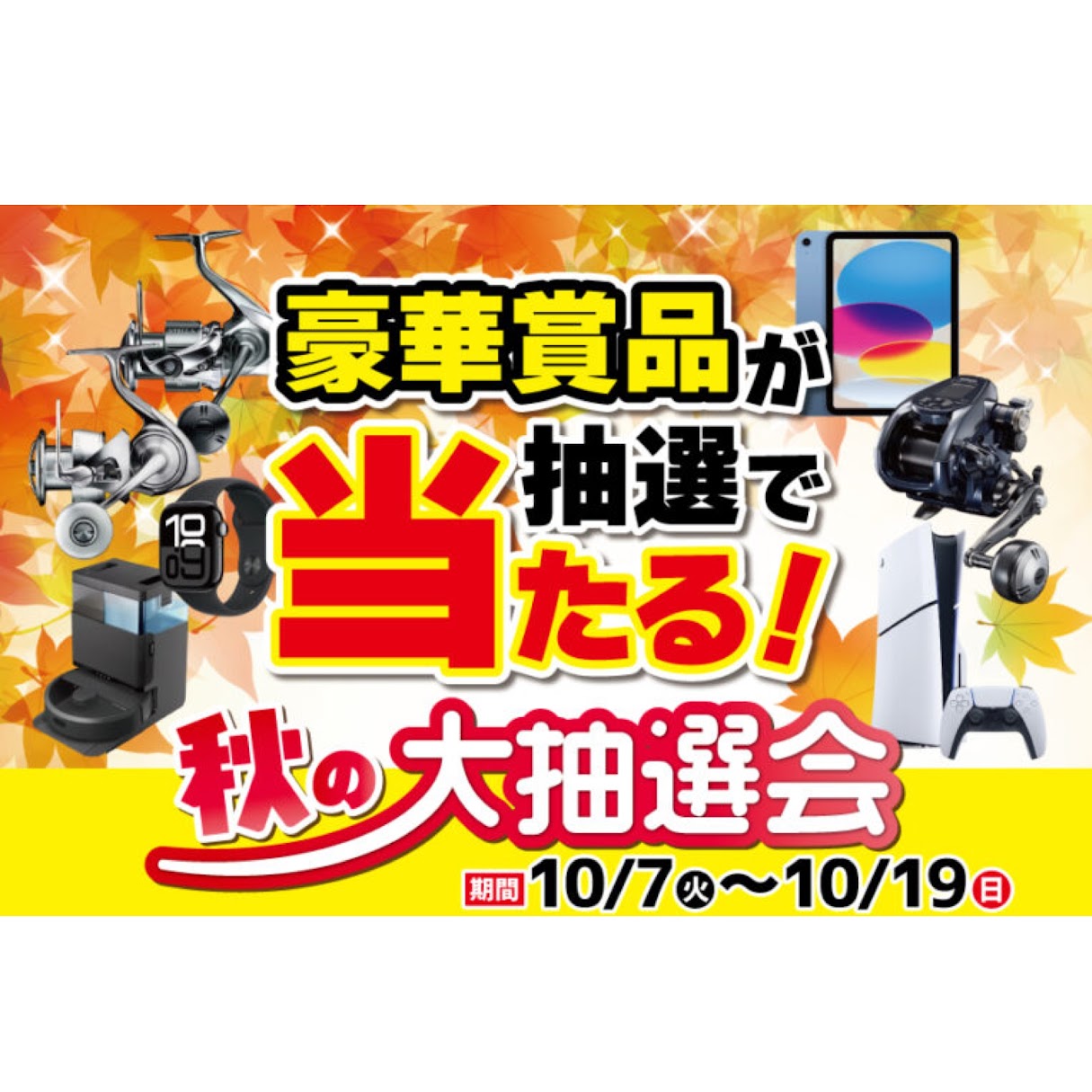【~19(日)】豪華景品が抽選で当たる!🎯秋の大抽選会...