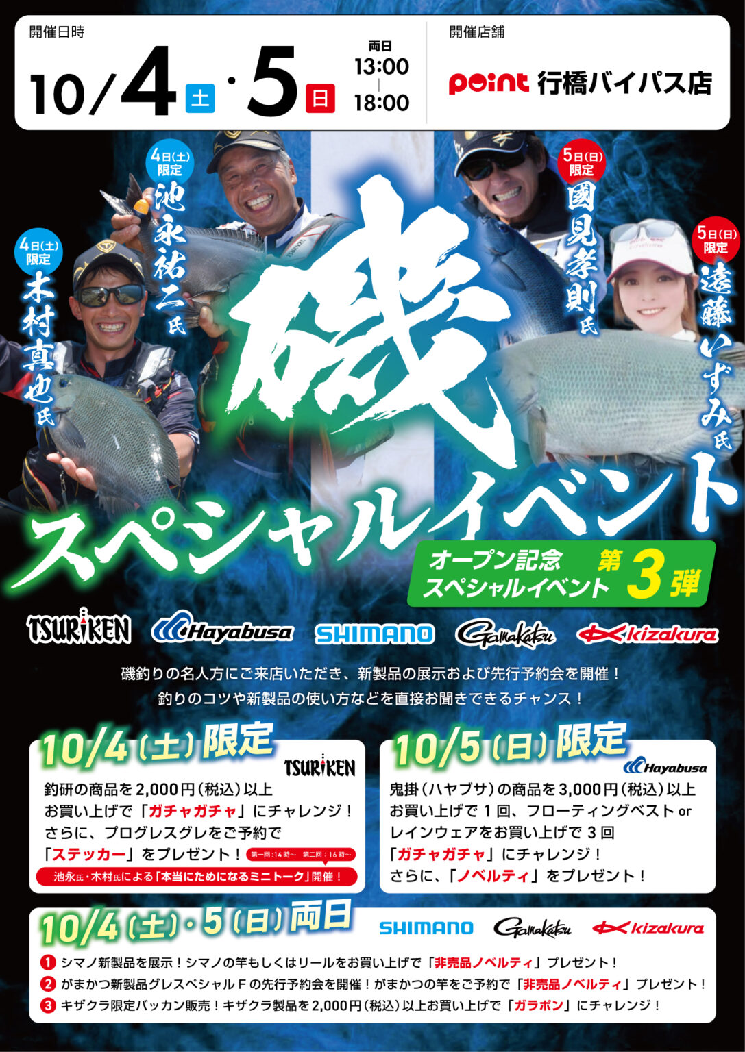 皆さまこんにちは! 釣具のポイント行橋バイパス店です イベントのお知らせです! 日時:10月4日(土)〜5日(...