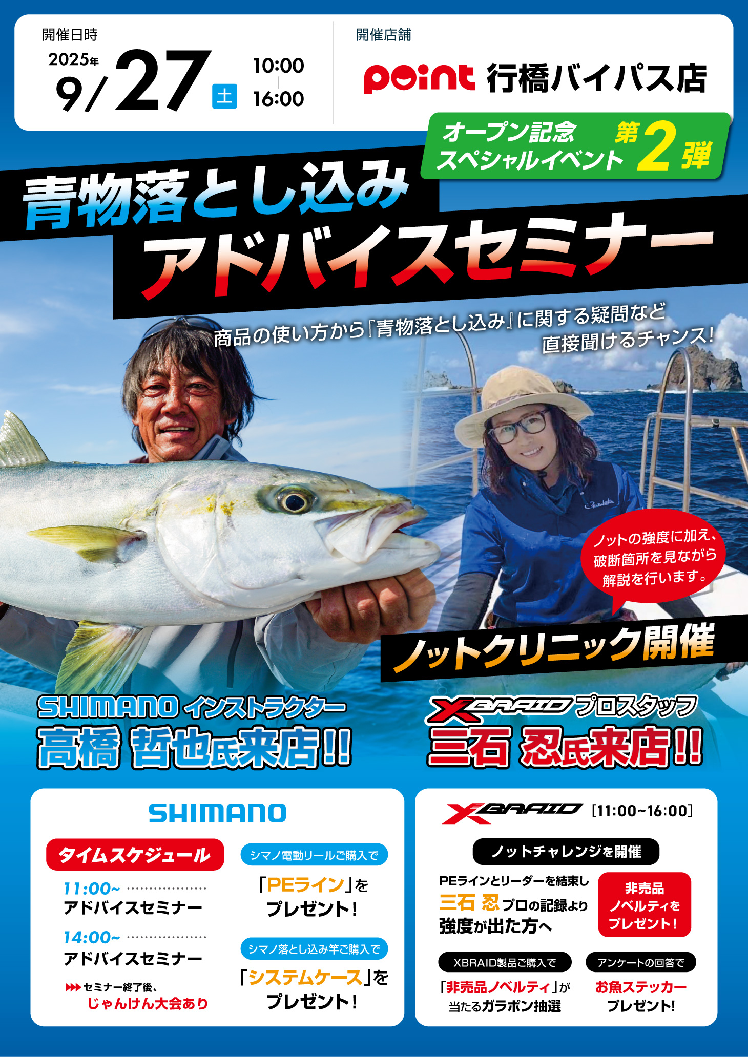 皆さんこんにちは! ポイント小倉湯川店です! 本日、朝10時より!! ポイント行橋バイパス店にて 【オープン記念スペシャルイベント第弾】 『青物落とし込みアドバイスセミナー』...