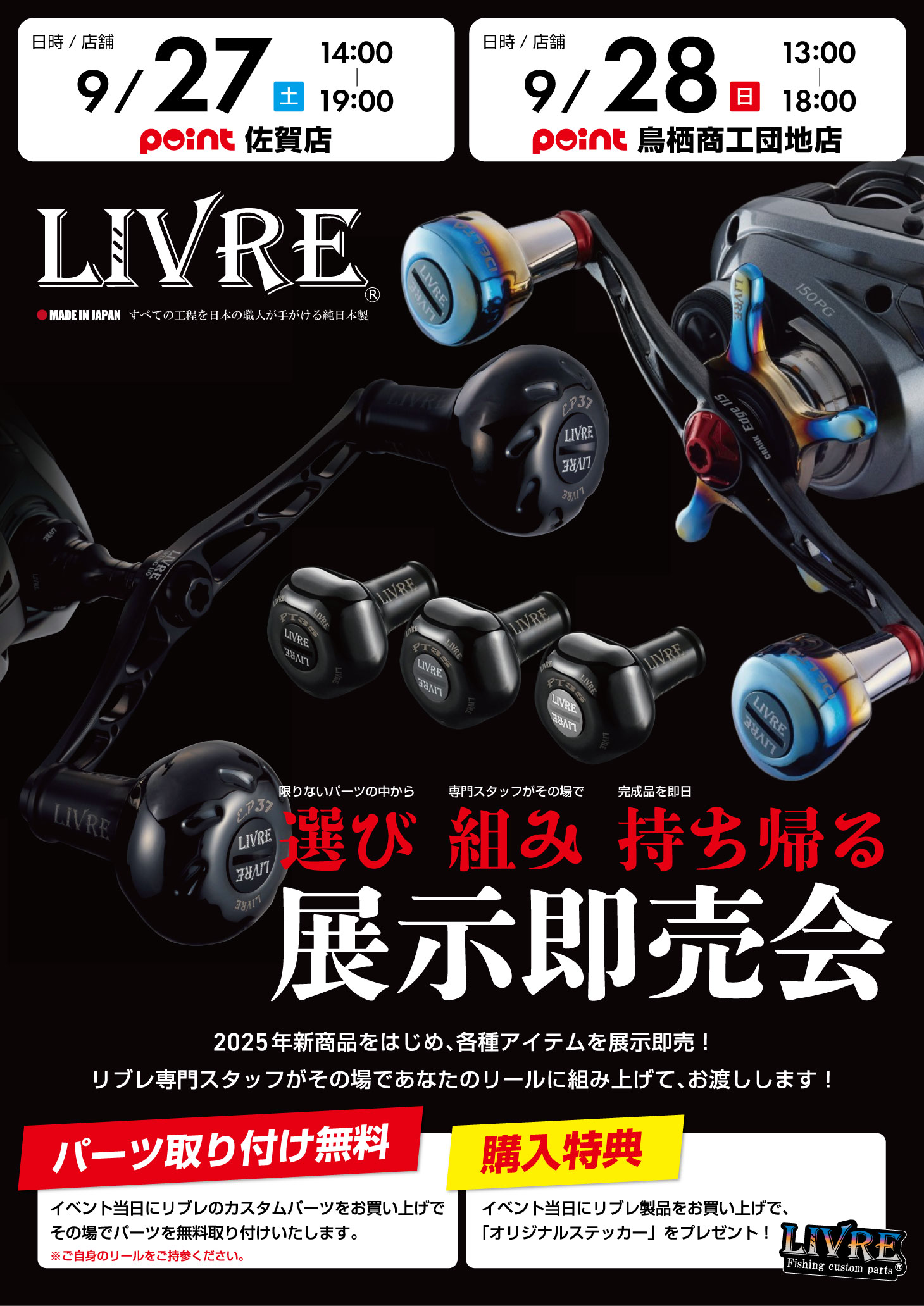 こんにちわ!!ポイント佐賀店です!! 毎回大好評(^^大人気イベントのご案内です!! LIVRE展示即売会開催!!! 開催 【場所】釣具のポイント 佐賀店 【日時】2025年9月27日(土)...
