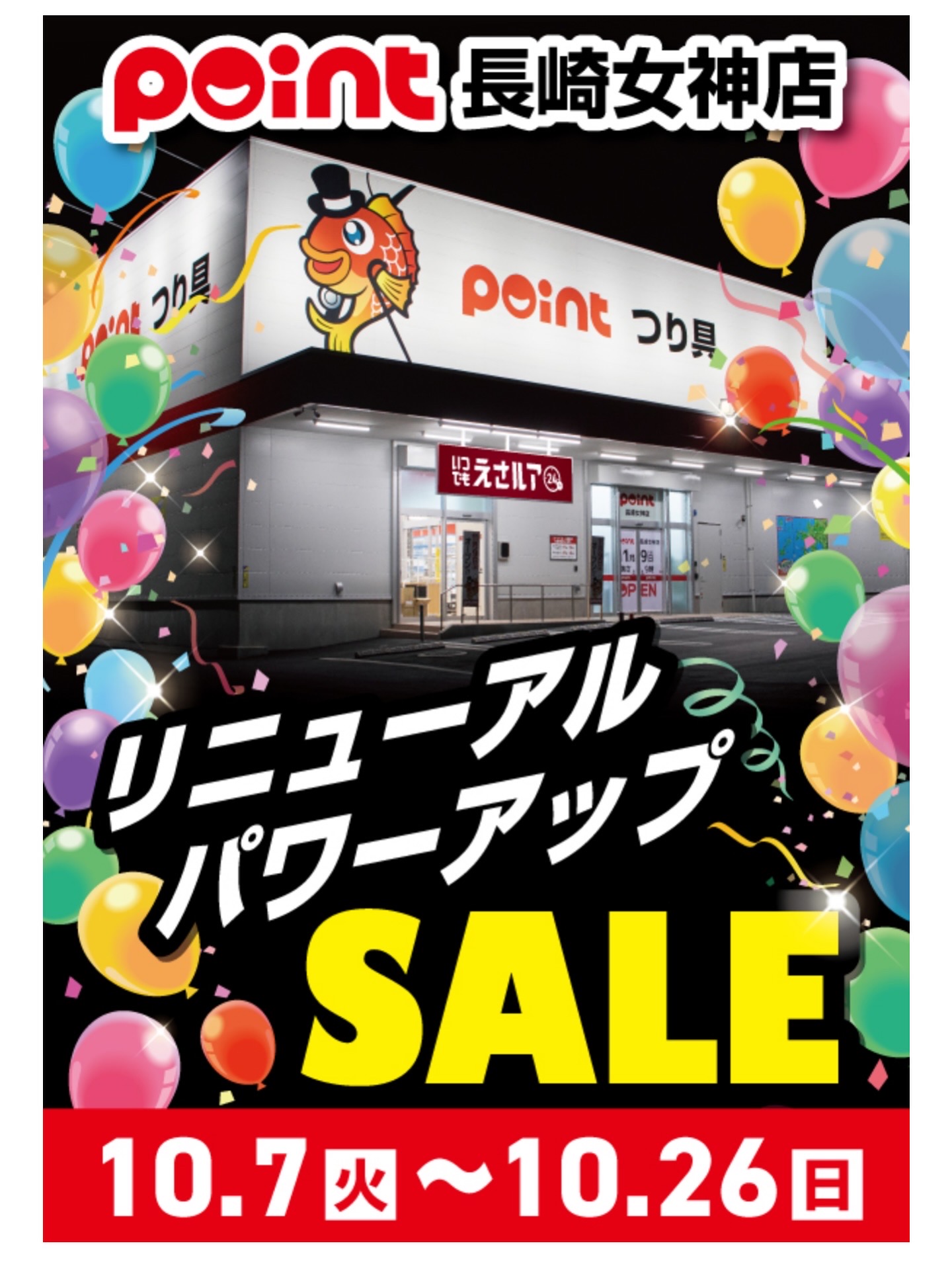 長崎女神店の店舗改装と リニューアルセールのご案内です! 長崎女神店併設の無人決済店舗「いつでも餌蔵」が 「いつでもえさルア」としてリニューアル致します!...