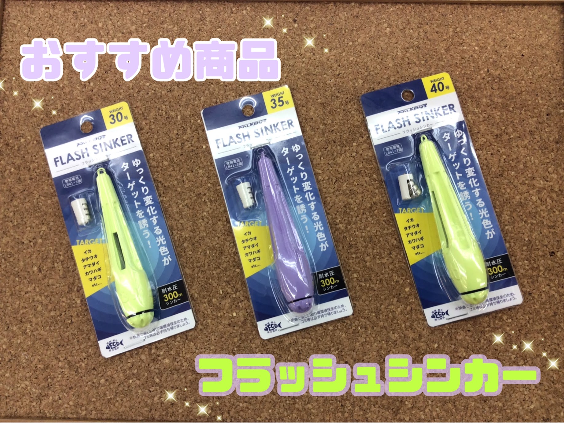 こんにちは新下関店の森川です 今回のオススメ商品はこちら 業界初‼電池で光るオモリグシンカー 防水性能もバッチリです 『緑』と『青』のゆっくりぼんやりな …