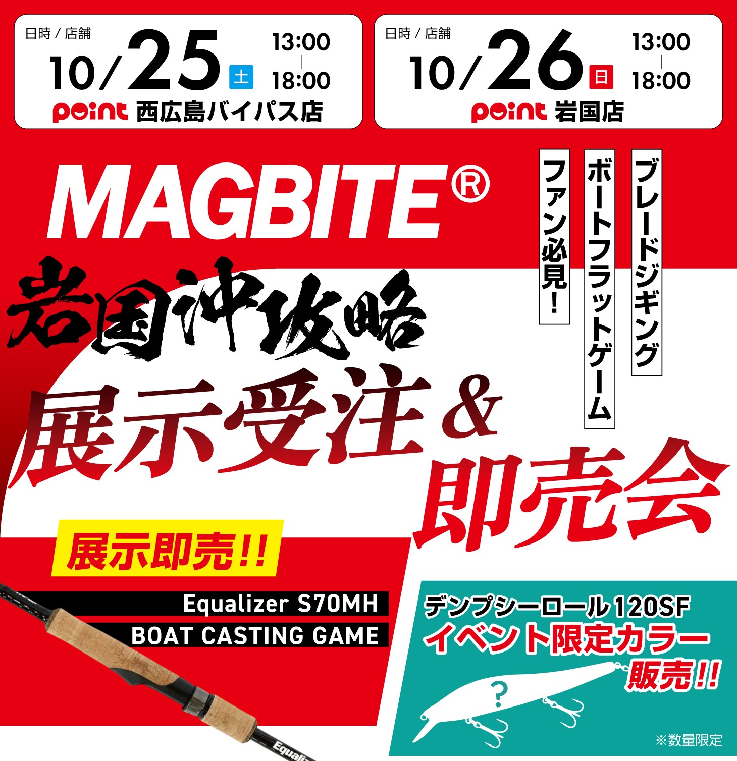 【お知らせ】「マグバイト岩国沖攻略!展示受注&即売会」開催!