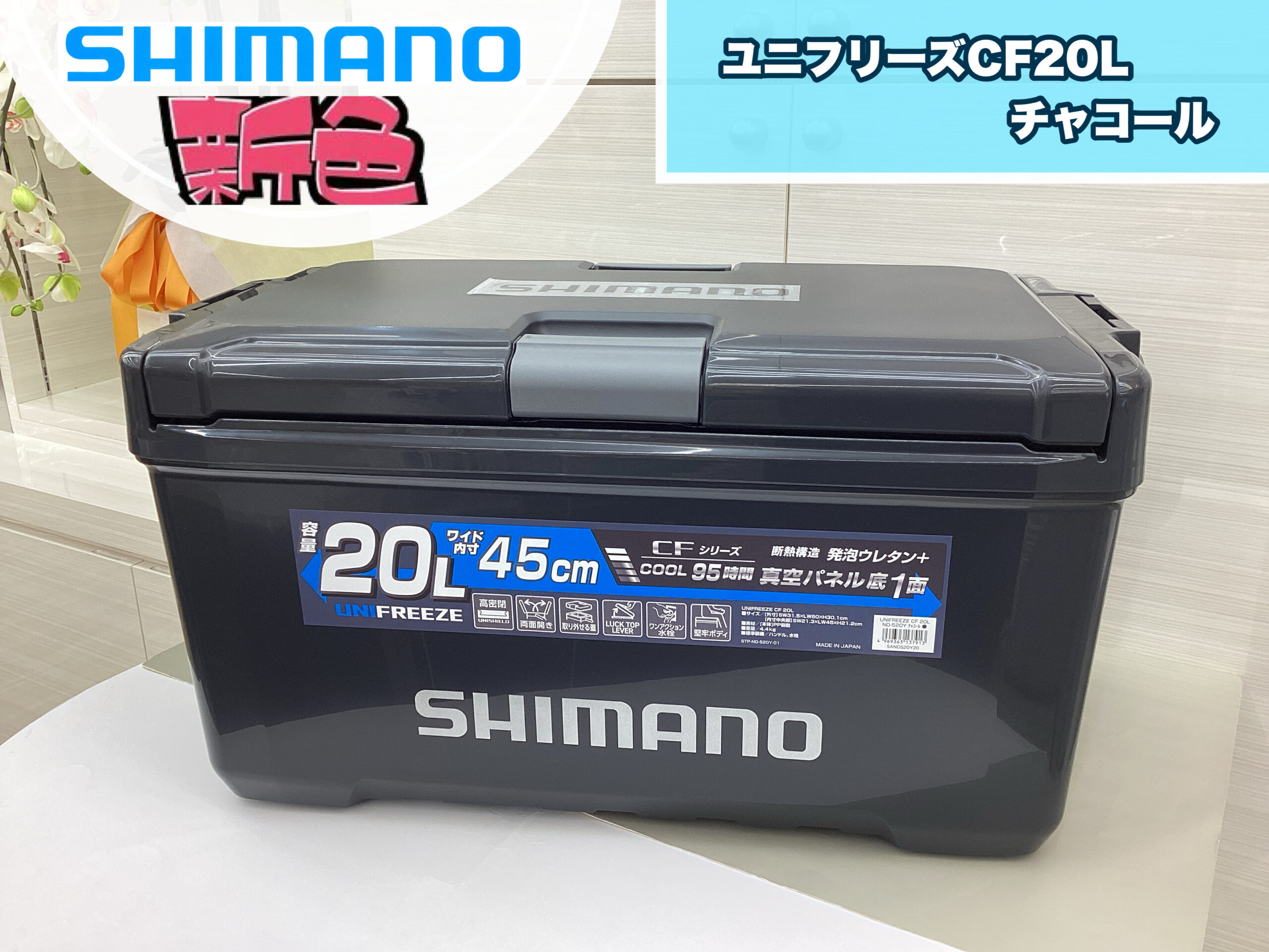 皆さまこんにちは釣具のポイント松山平田店です SHIMANOより新色登場‼ ユニフリーズCF20 Lチャコール 保冷力はもちろん‼ 白色だと汚れたら目立つ...