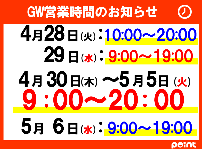 皆さんこんにちは ポイント熊本流通団地店です 4/24よりGWスピードクジ 開催致します!! 3日間限定となっております お忘れのないようご利用下さいませ 皆様のご来店お待ちしております...