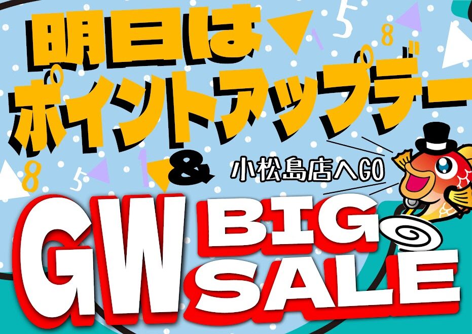 皆様こんにちは! ポイント柳川徳益店です! 現在GWビッグセール開催中です!!! 【特別企画 第1弾】GWスピードくじ 開催...