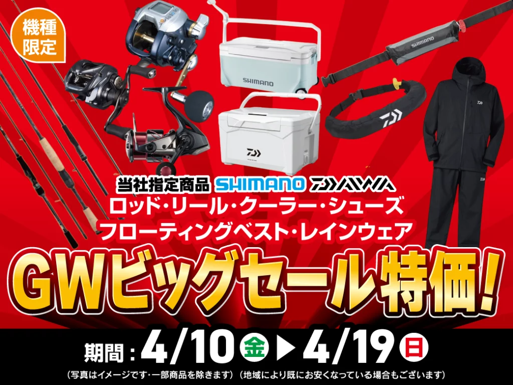 当社指定 シマノ・ダイワのロッド・リール・
