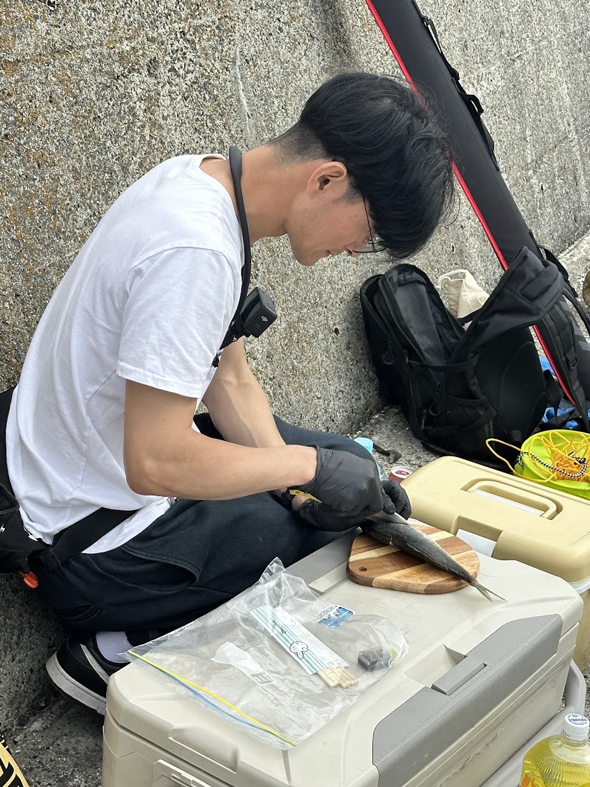 ルウクくん・土居さんはサビキ釣り!ぽんちゃんは、投げ釣りを!
