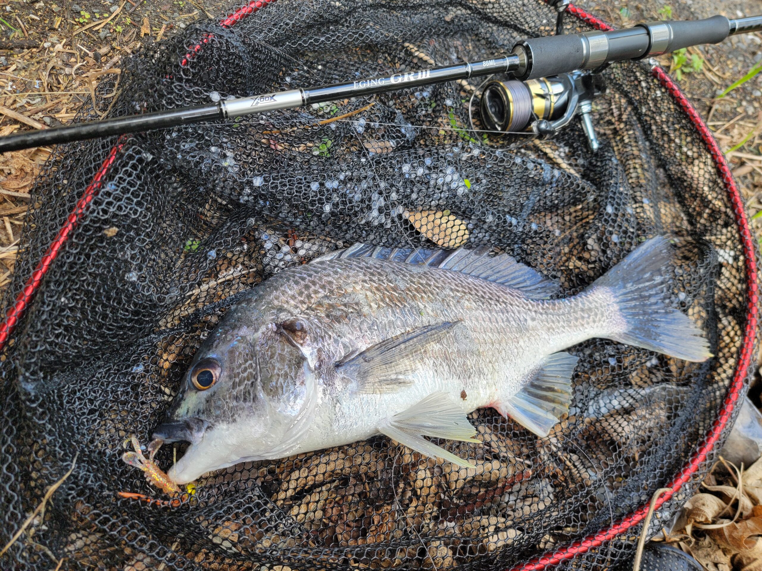 実はこの日は実釣1時間の間で3バラシもしているのですが、バラしたのは全部チヌ(クロダイ)。