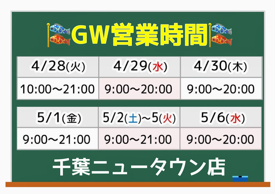 GWの営業時間のご案内です💁