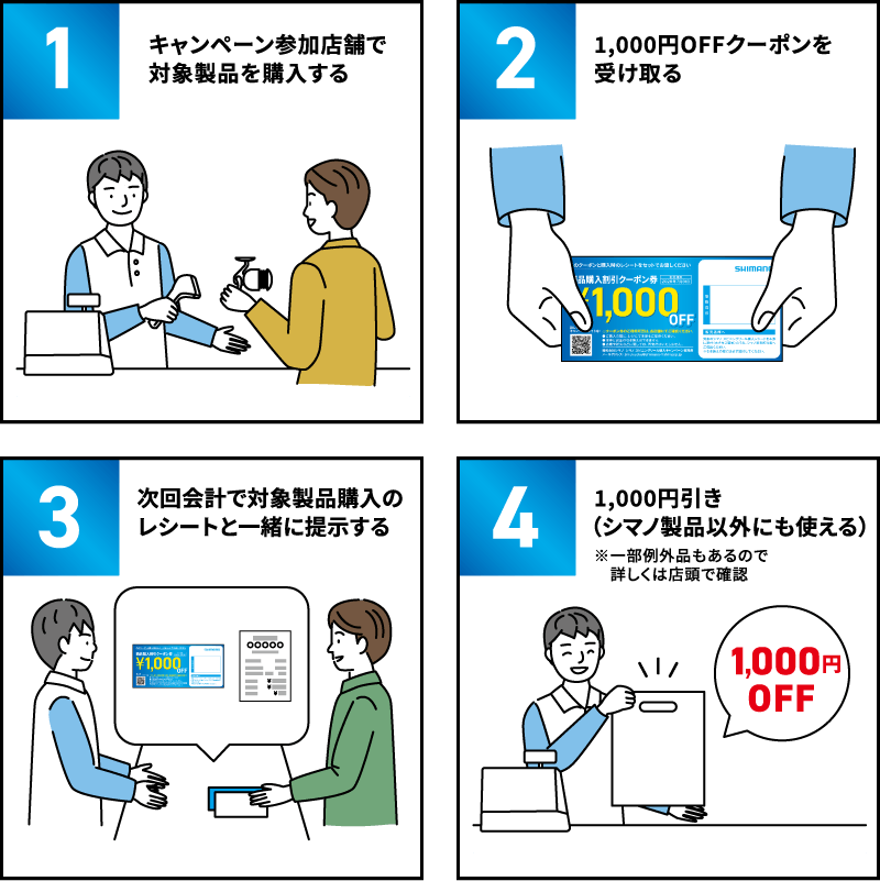 クーポンは全国のシマノ製品取り扱い店舗で