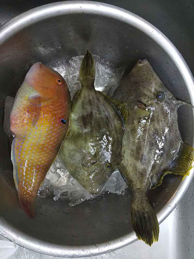 刺身、塩焼、煮付、干物、酢漬け、南蛮、フライ、天ぷら、味噌漬け(西京漬風)、吸物etc...毒気有るもの以外は食卓へ!