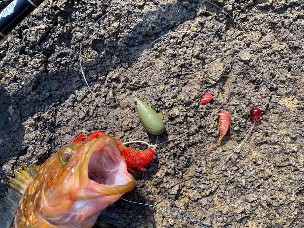 、道糸:繋いだPE、リーダー:道糸で使っていたナイロン6号、