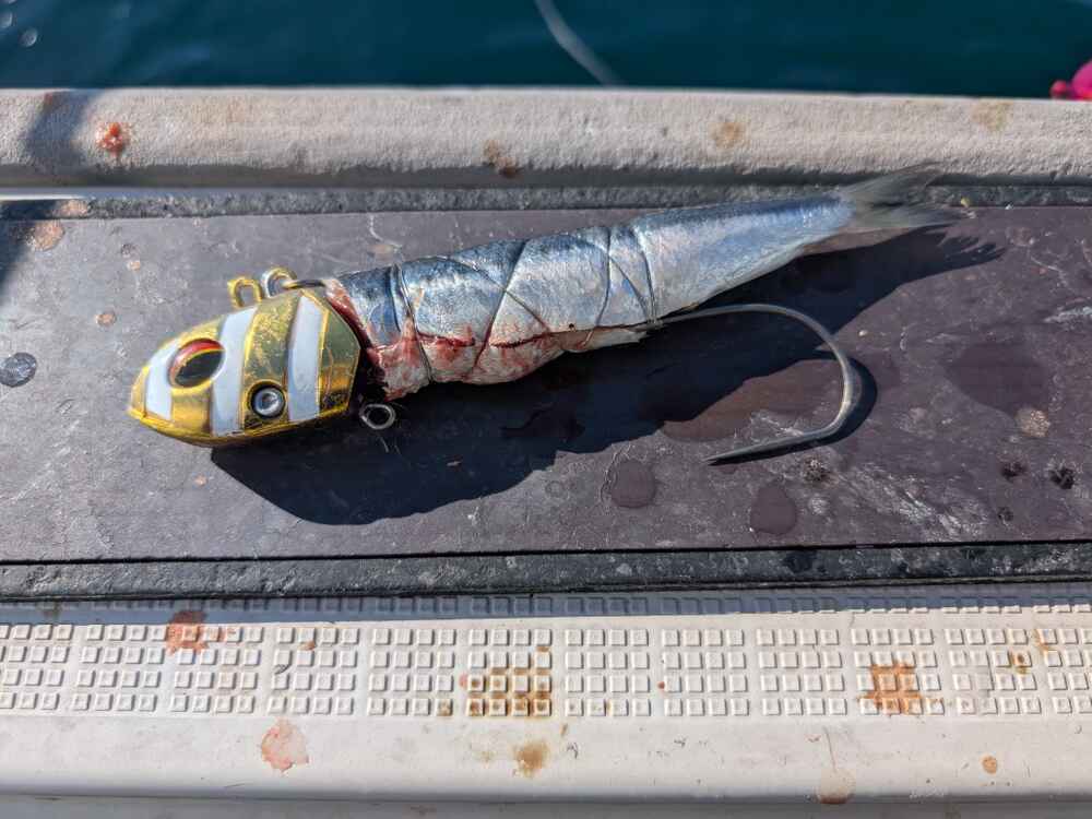 、道糸:繋いだPE、リーダー:道糸で使っていたナイロン6号、