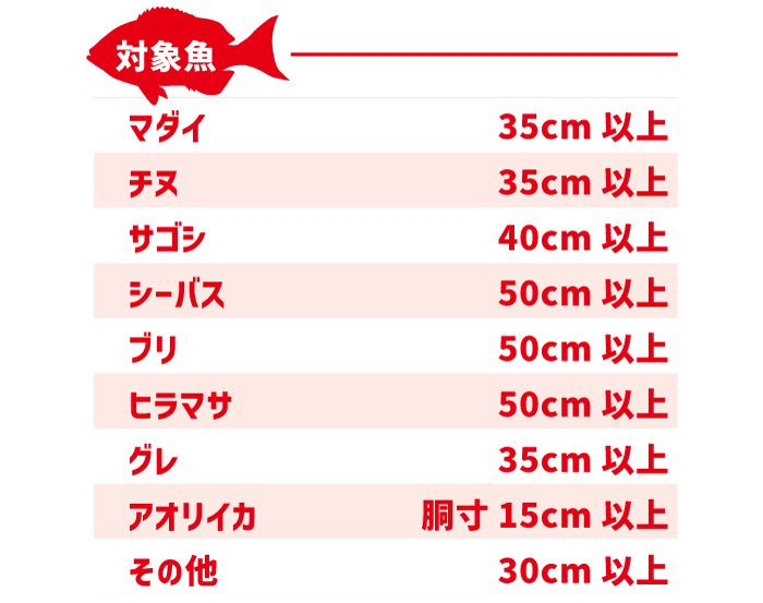 ・上記表の当社指定の魚種サイズ以上の魚が対象となります。